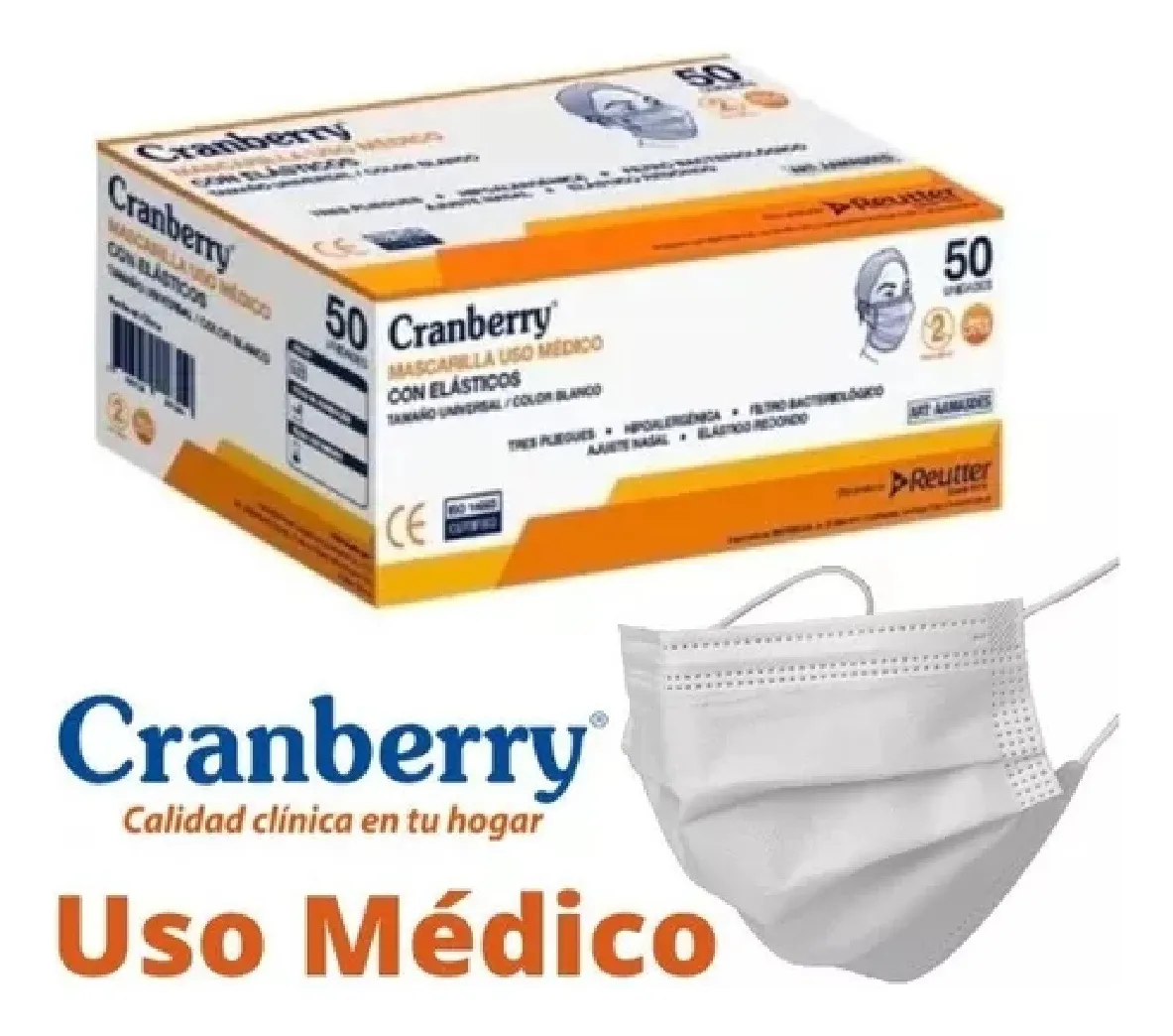 Mascarilla Cranberry 3 Pliegues Cranberry Blanco – Caja 50 Unidades